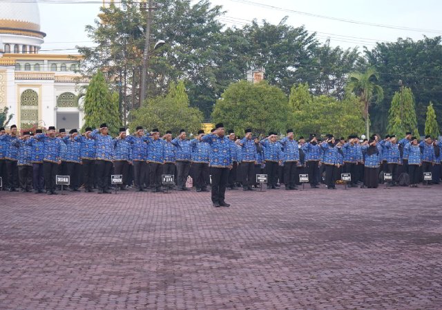 Kisaran — Asisten Pemerintahan dan Kesejahteraan Rakyat Kabupaten Asahan memimpin Apel Perdana Hari Kesadaran Nasional Tahun 2026 yang digelar di Halaman Kantor Bupati Asahan, Senin (19/01/2026). Kegiatan ini diikuti oleh seluruh Aparatur Sipil Negara (ASN), Pegawai Pemerintah dengan Perjanjian Kerja (PPPK), termasuk PPPK Paruh Waktu di lingkungan Pemerintah Kabupaten Asahan yang pada kesempatan tersebut mengenakan atribut Korps Pegawai Republik Indonesia (Korpri).