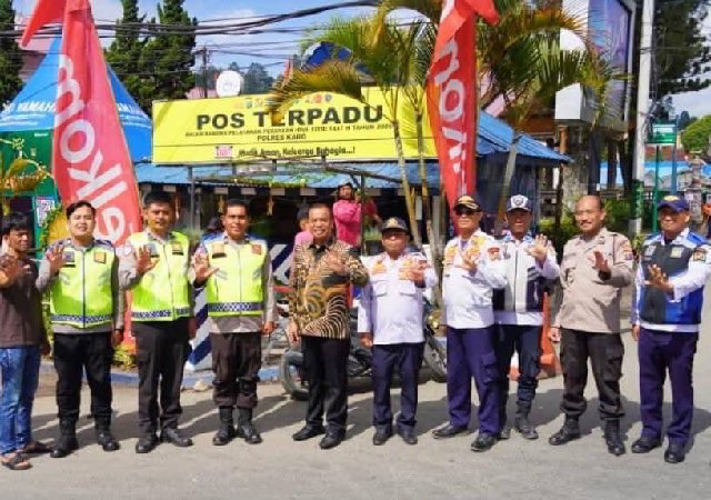 Berastagi – Bupati Karo, Brigjen Pol (Purn) Dr. dr. Antonius Ginting, Sp.OG, M.Kes melakukan kunjungan lapangan ke Pos Terpadu dan Pos Pelayanan dalam rangka pelayanan perayaan Idul Fitri 1447 H Tahun 2026 pada Jumat (13/03/2026).