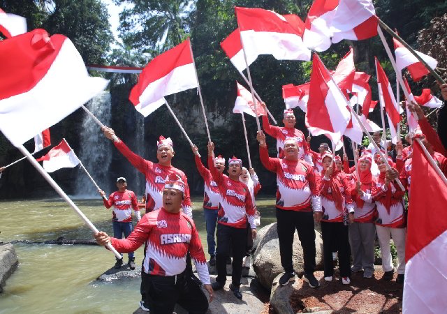 Menyambut Hari Ulang Tahun (HUT) ke-80 Kemerdekaan Republik Indonesia (RI), kawasan Wisata Air Terjun Simonang-Monang di Desa Perkebunan Padang Pulau, Kecamatan Bandar Pulau, dipenuhi warna Merah Putih.
