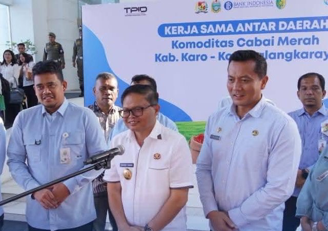 MEDAN – Dalam upaya menjaga stabilitas pasokan dan harga pangan nasional, Gubernur Sumatera Utara memimpin langsung seremoni pelepasan pengiriman tahap ketiga komoditi cabai merah keriting menuju Kota Palangka Raya, Provinsi Kalimantan Tengah.Kegiatan ini berlangsung di halaman Kantor Gubernur Sumatera Utara pada Rabu pagi.