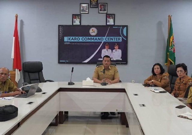 Sekretaris Daerah Kabupaten Karo, Gelora Kurnia Putra, S.STP., M.M., mengikuti kegiatan Webinar Sosialisasi dan Diskusi Peraturan Menteri Pendidikan Dasar dan Menengah (Permendikdasmen) Nomor 6 Tahun 2026 tentang Budaya Sekolah Aman dan Nyaman, secara daring dari Ruangan Karo Command Center, Kantor Bupati Karo, Senin (2/3/2026).