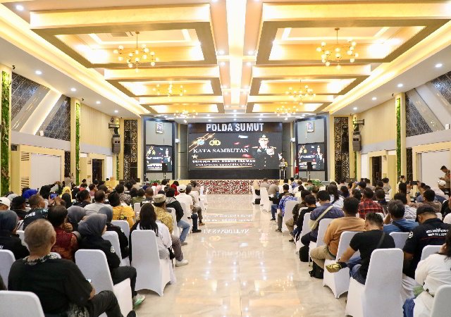 Medan — Polda Sumatera Utara menggelar kegiatan Silaturahmi Polda Sumut Bersama Media dalam rangka menyambut Hari Raya Idul Fitri 1447 Hijriah di Aula Tribrata Polda Sumut, Kamis (12/3/2026).