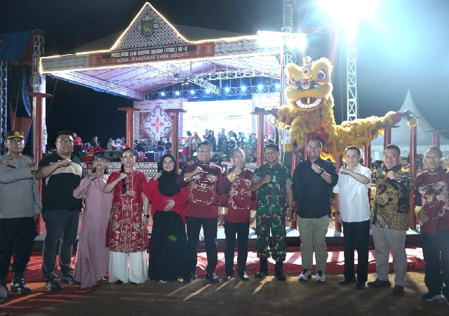 Kisaran – Wakil Bupati Asahan, Rianto, S.H., M.A.P., menghadiri pagelaran seni budaya etnis Tionghoa dalam rangkaian Pekan Seni dan Budaya Daerah (PSBD) ke-VI Kabupaten Asahan yang berlangsung di Lapangan PSBD, Jalan Taufan Gama Simatupang, Kisaran, Senin malam (13/10).