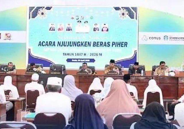 Kabanjahe – Bupati Karo, Brigjen Pol (Purn.) Dr. dr. Antonius Ginting, Sp.OG., M.Kes., yang diwakilkan oleh Wakil Bupati Karo, Komando Tarigan, SP., melaksanakan kegiatan Njunjungken Beras Piher kepada Jemaah Haji Kabupaten Karo Tahun 1447 H/2026 M yang dilaksanakan di Aula Rakoetta Brahmana, Kabanjahe, Selasa (20/04/2026). Kegiatan ini merupakan tradisi masyarakat Karo sebagai bentuk doa, dukungan, serta ungkapan kebersamaan kepada para calon jemaah haji sebelum berangkat menunaikan ibadah ke Tanah Suci.